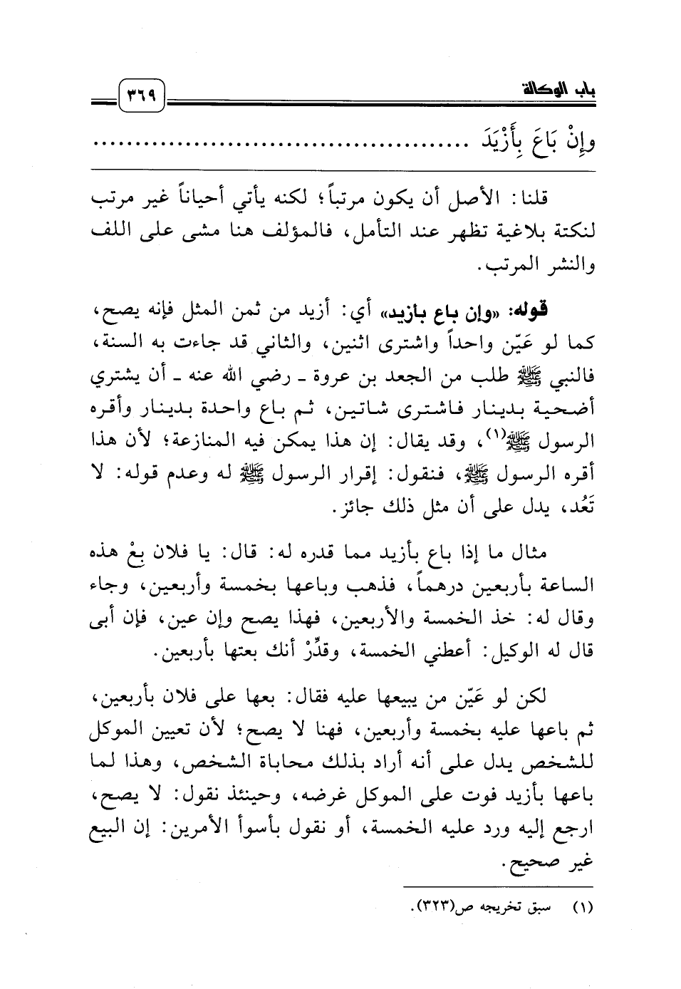 مثال ما إذا باع بأزيد مما قدره له: قال: يا فلان بِعْ هذه الساعة بأربعين درهماً، فذهب وباعها بخمسة وأربعين، وجاء وقال له: خذ الخمسة والأربعين، فهذا يصح وإن عين، فإن أبى قال له الوكيل: أعطني الخمسة، وقدِّرْ أنك بعتها بأربعين.