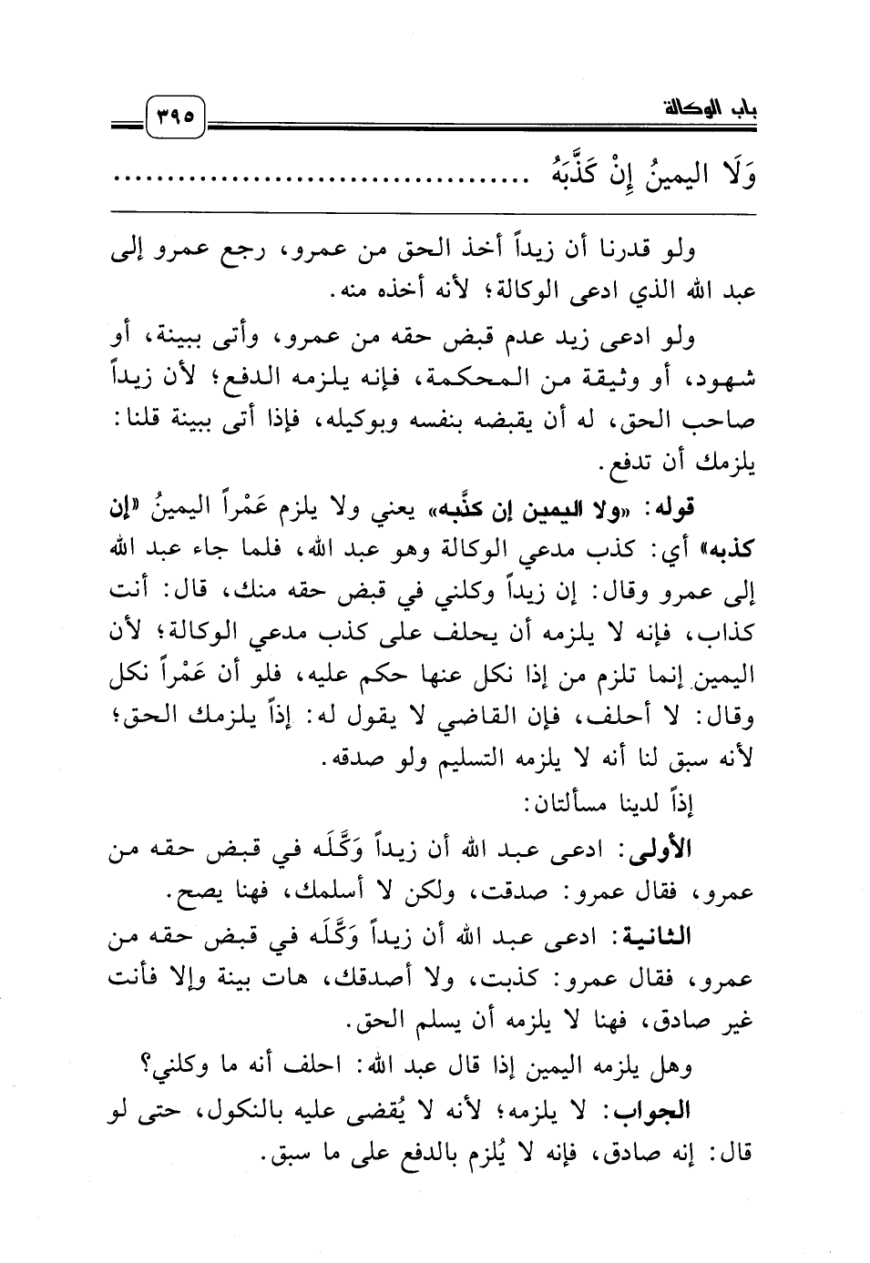 الثانية: ادعى عبد الله أن زيداً وَكَّلَه في قبض حقه من عمرو، فقال عمرو: كذبت، ولا أصدقك، هات بينة وإلا فأنت غير صادق، فهنا لا يلزمه أن يسلم الحق.