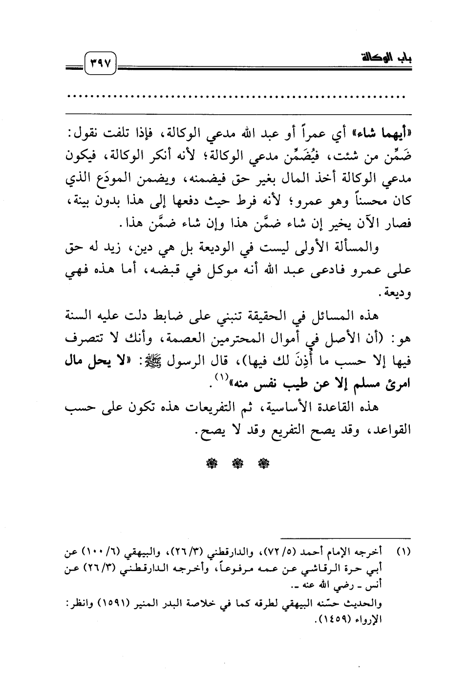 (¬1) أخرجه الإمام أحمد (5/ 72)، والدارقطني (3/ 26)، والبيهقي (6/ 100) عن أبي حرة الرقاشي عن عمه مرفوعاً، وأخرجه الدارقطني (3/ 26) عن أنس ـ رضي الله عنه ـ.