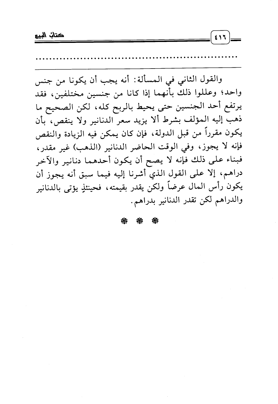 والقول الثاني في المسألة: أنه يجب أن يكونا من جنس واحد؛ وعللوا ذلك بأنهما إذا كانا من جنسين مختلفين، فقد يرتفع أحد الجنسين حتى يحيط بالربح كله، لكن الصحيح ما ذهب إليه المؤلف بشرط ألا يزيد سعر الدنانير ولا ينقص، بأن يكون مقرراً من قبل الدولة، فإن كان يمكن فيه الزيادة والنقص فإنه لا يجوز، وفي الوقت الحاضر الدنانير (الذهب) غير مقدر، فبناء على ذلك فإنه لا يصح أن يكون أحدهما دنانير والآخر دراهم، إلا على القول الذي أشرنا إليه فيما سبق أنه يجوز أن يكون رأس المال عرضاً ولكن يقدر بقيمته، فحينئذٍ يؤتى بالدنانير والدراهم لكن تقدر الدنانير بدراهم.