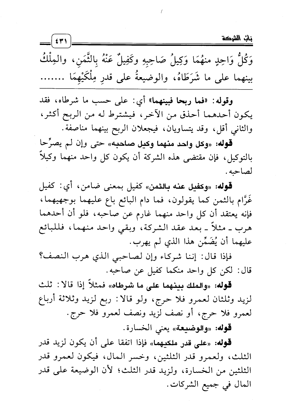قوله: «وكل واحد منهما وكيل صاحبه» حتى وإن لم يصرِّحا بالتوكيل، فإن مقتضى هذه الشركة أن يكون كل واحد منهما وكيلاً لصاحبه.