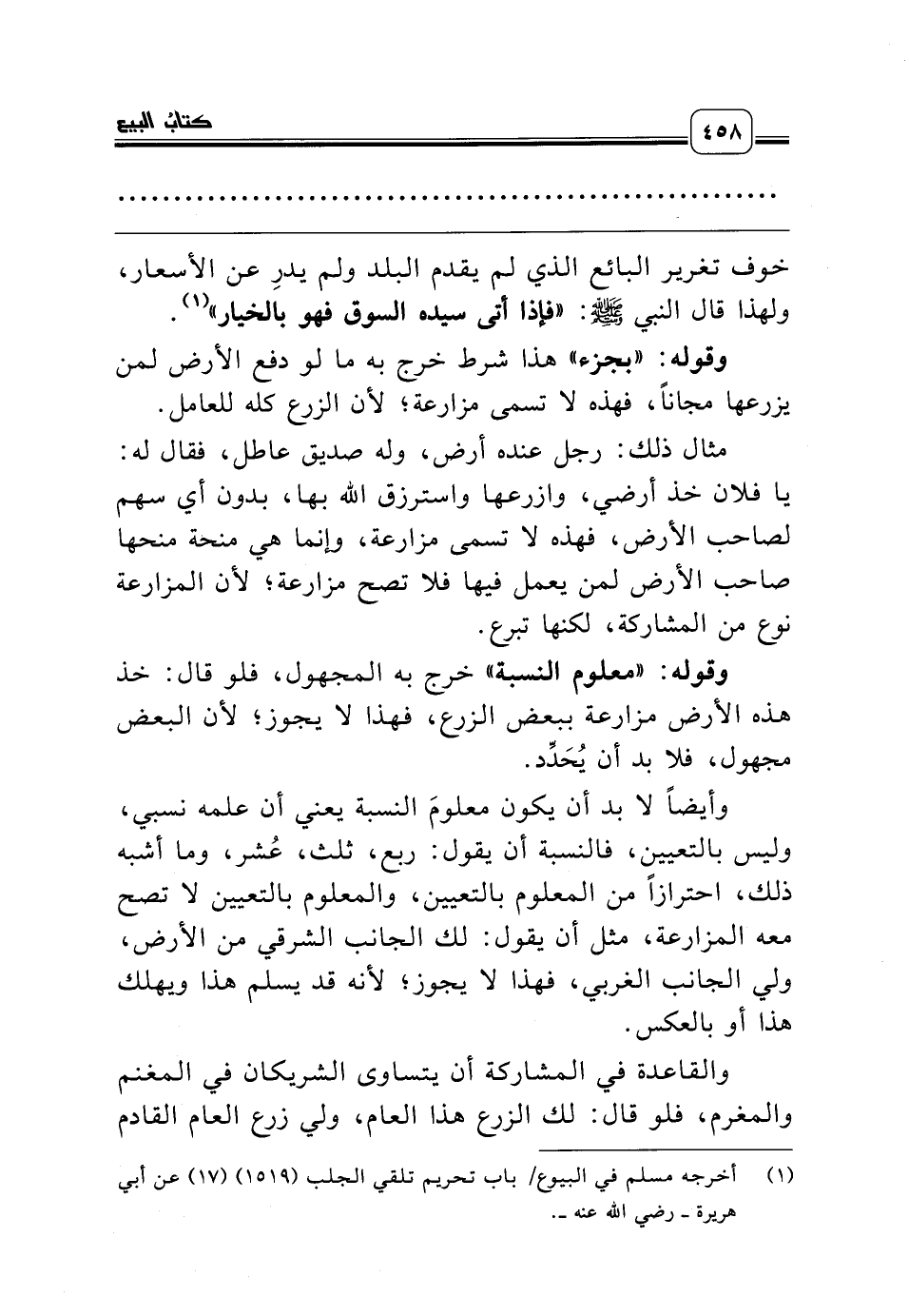 (¬1) أخرجه مسلم في البيوع/ باب تحريم تلقي الجلب (1519) (17) عن أبي هريرة ـ رضي الله عنه ـ.
