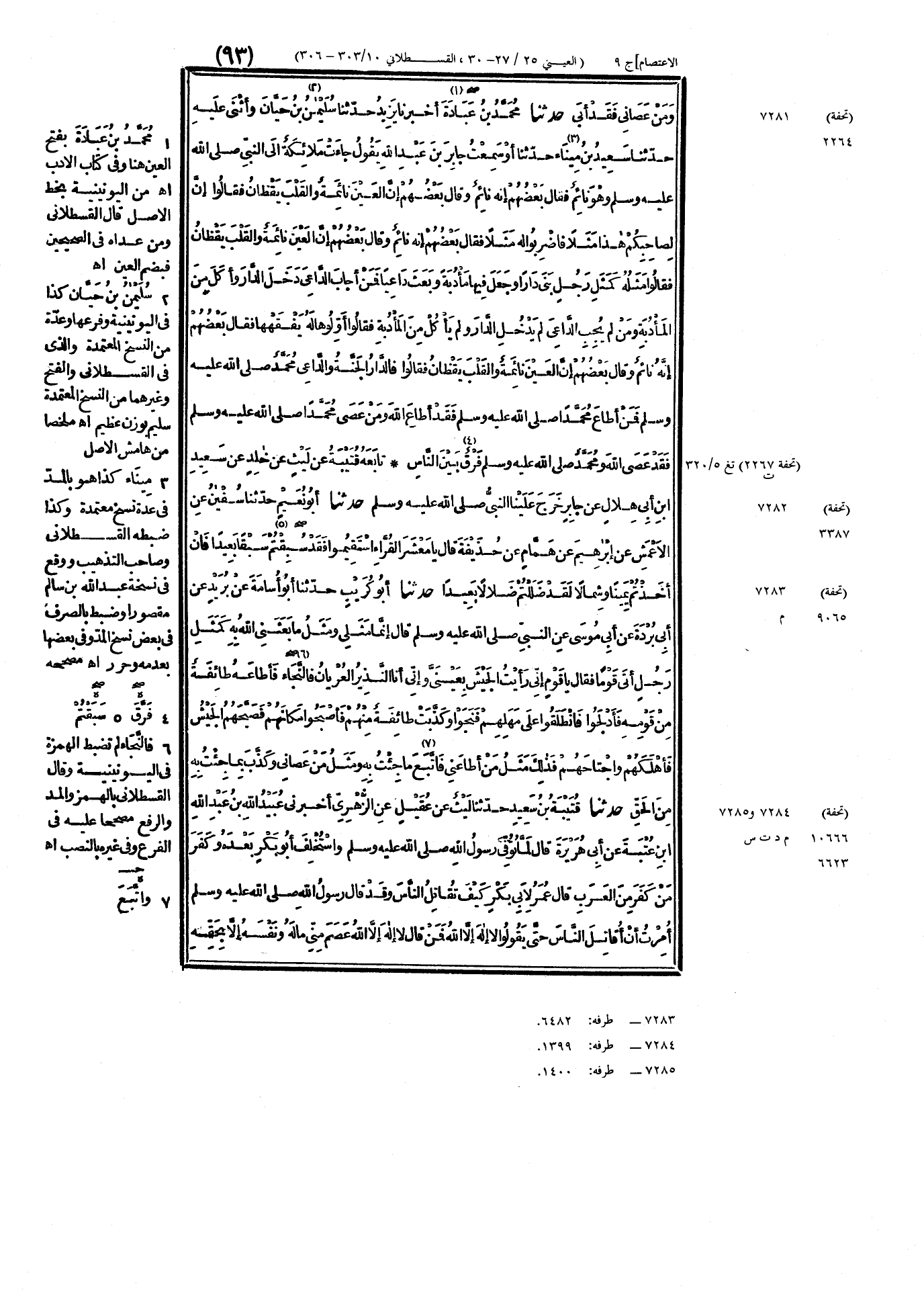 ٧٢٨٣ - حَدَّثَنَا أَبُو كُرَيْبٍ، حَدَّثَنَا أَبُو أُسَامَةَ، عَنْ بُرَيْدٍ، عَنْ أَبِي بُرْدَةَ، عَنْ أَبِي مُوسَى، عَنِ النَّبِيِّ صَلَّى اللهُ عَلَيْهِ وَسَلَّمَ، قَالَ: " إِنَّمَا مَثَلِي وَمَثَلُ مَا بَعَثَنِي اللَّهُ بِهِ، كَمَثَلِ رَجُلٍ أَتَى قَوْمًا فَقَالَ: يَا قَوْمِ، إِنِّي رَأَيْتُ الجَيْشَ بِعَيْنَيَّ، وَإِنِّي أَنَا النَّذِيرُ العُرْيَانُ، فَالنَّجَاءَ، فَأَطَاعَهُ طَائِفَةٌ مِنْ قَوْمِهِ، فَأَدْلَجُوا، فَانْطَلَقُوا عَلَى مَهَلِهِمْ فَنَجَوْا، وَكَذَّبَتْ طَائِفَةٌ مِنْهُمْ، فَأَصْبَحُوا مَكَانَهُمْ، فَصَبَّحَهُمُ الجَيْشُ فَأَهْلَكَهُمْ وَاجْتَاحَهُمْ، فَذَلِكَ مَثَلُ مَنْ أَطَاعَنِي فَاتَّبَعَ مَا جِئْتُ بِهِ، وَمَثَلُ مَنْ عَصَانِي وَكَذَّبَ بِمَا جِئْتُ بِهِ مِنَ الحَقِّ "