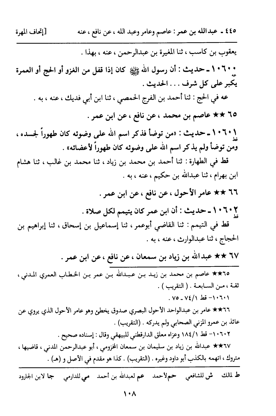 ـ عَاصِمُ بْنُ مُحَمَّدٍ , عَنْ نَافِعٍ , عَنِ ابْنِ عُمَرَ.