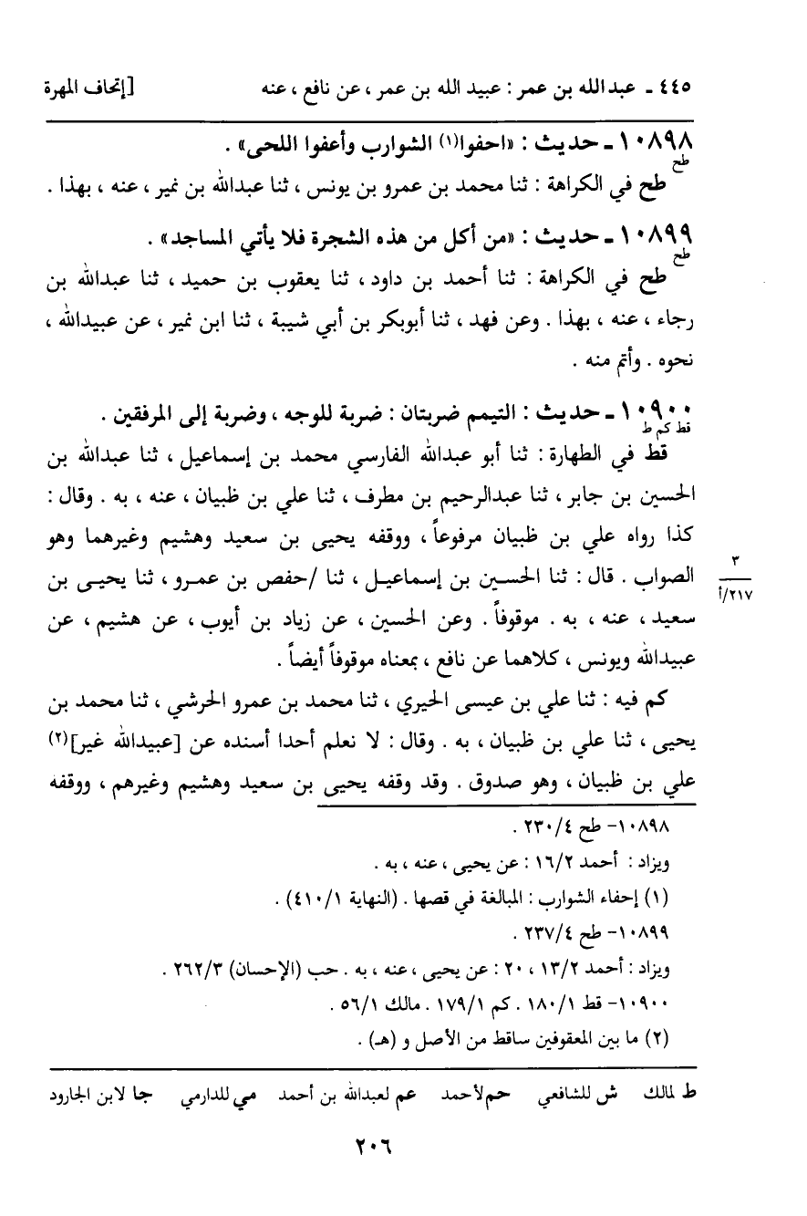 10898 - حَدِيثٌ (طح) : " احْفُوا الشَّوَارِبَ وَأَعْفُوا اللِّحَى ". طح فِي الْكَرَاهَةِ: ثنا مُحَمَّدُ بْنُ عَمْرِو بْنِ يُونُسَ، ثنا عَبْدُ اللَّهِ بْنُ نُمَيْرٍ، عَنْهُ، بِهَذَا.