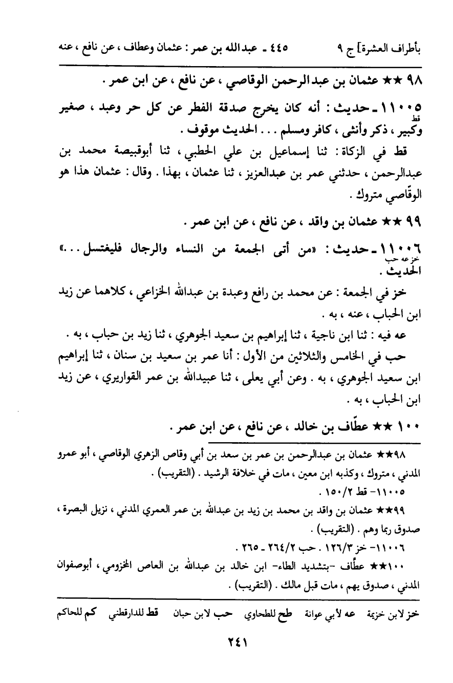 ـ عُثْمَانُ بْنُ عَبْدِ الرَّحْمَنِ الْوَقَّاصِيُّ، عَنْ نَافِعٍ، عَنِ ابْنِ عُمَرَ.