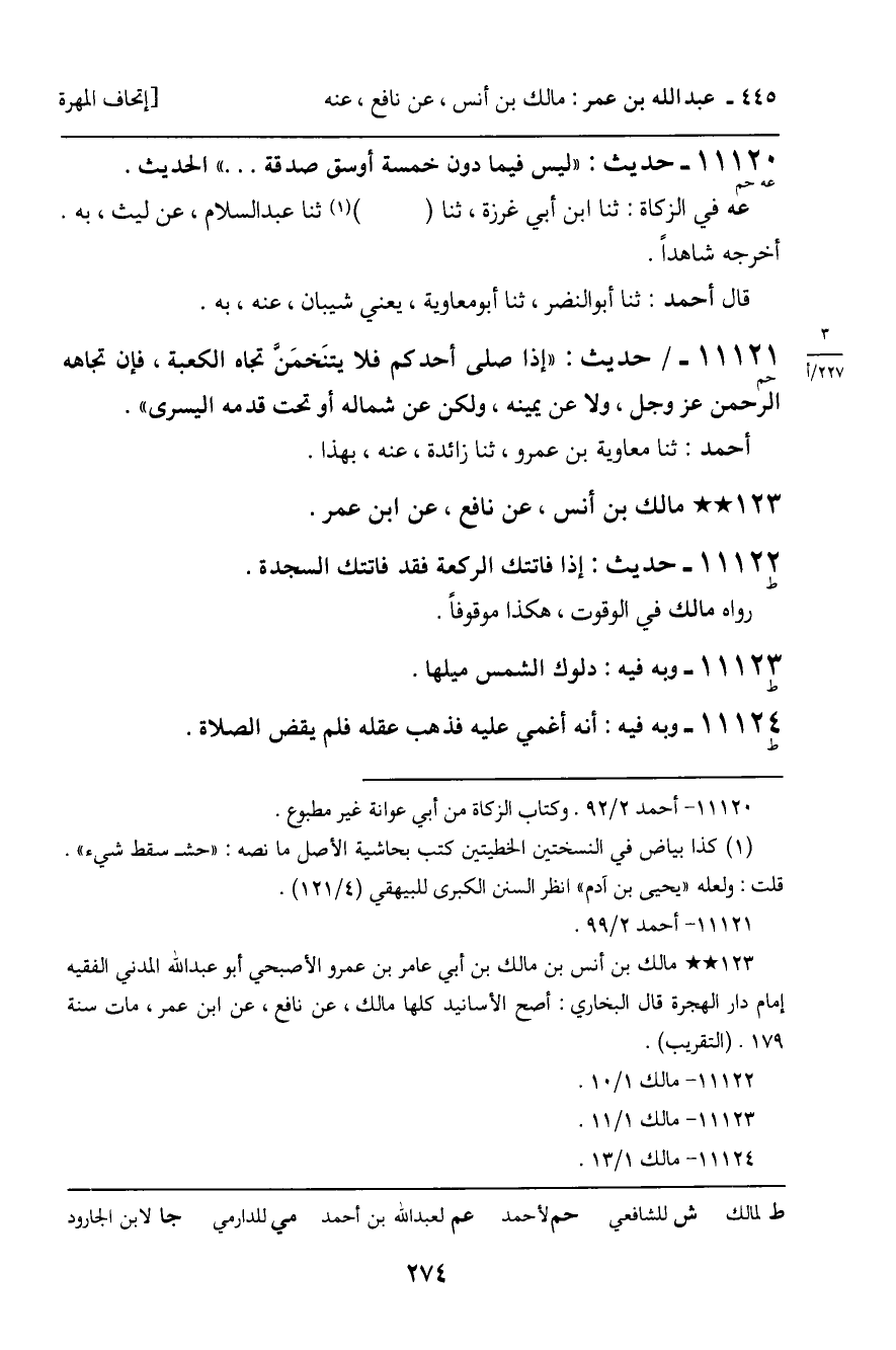 ـ مَالِكُ بْنُ أَنَسٍ، عَنْ نَافِعٍ، عَنِ ابْنِ عُمَرَ.