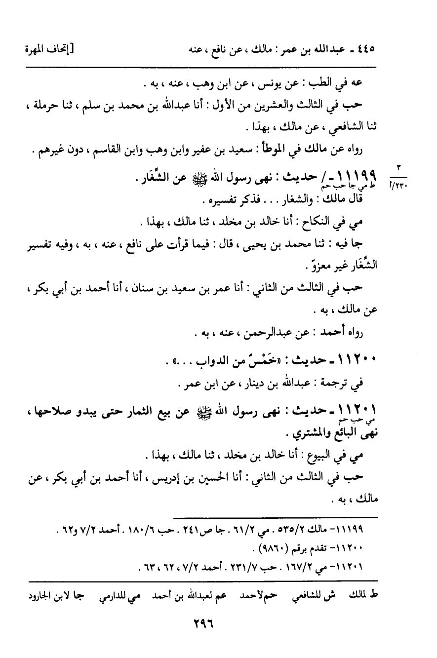 11201 - حَدِيثٌ (مي حب حم) : نَهَى رَسُولُ اللَّهِ , صَلَّى اللَّهُ عَلَيْهِ وَسَلَّمَ، عَنْ بَيْعِ الثِّمَارِ حَتَّى يَبْدُوَ صَلاحُهَا، نَهَى الْبَائِعَ وَالْمُشْتَرِي. مي فِي الْبُيُوعِ: أَنَا خَالِدُ بْنُ مَخْلَدٍ، ثنا مَالِكٌ، بِهَذَا. حب فِي الثَّالِثِ مِنَ الثَّانِي: أَنَا الْحُسَيْنُ بْنُ إِدْرِيسَ، أَنَا أَحْمَدُ بْنُ أَبِي بَكْرٍ، عَنْ مَالِكٍ، بِهِ.