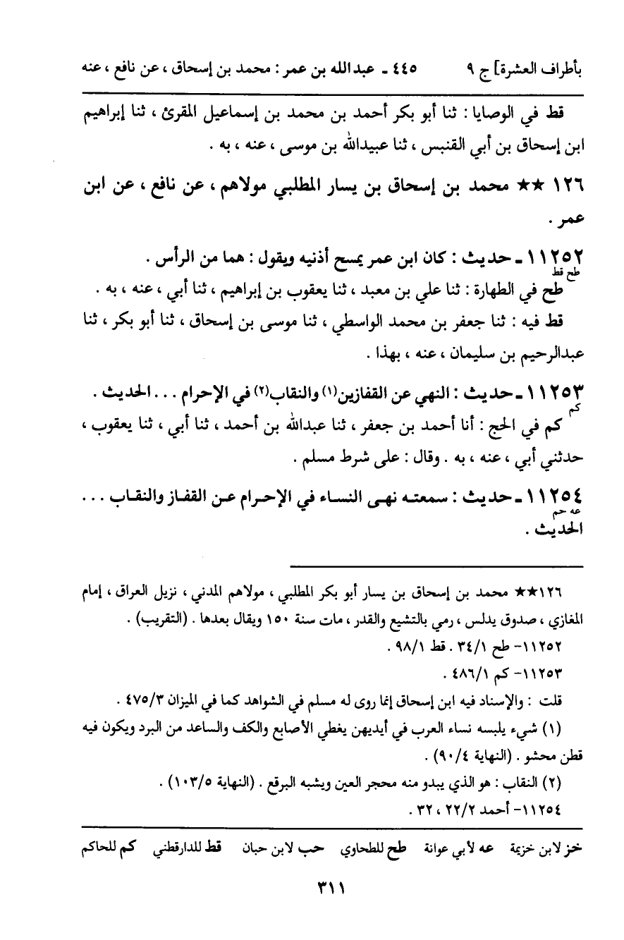 ـ مُحَمَّدُ بْنُ إِسْحَاقَ بْنِ يَسَارٍ الْمُطَّلِبِيُّ مَوْلاهُمْ، عَنْ نَافِعٍ، عَنِ ابْنِ عُمَرَ.