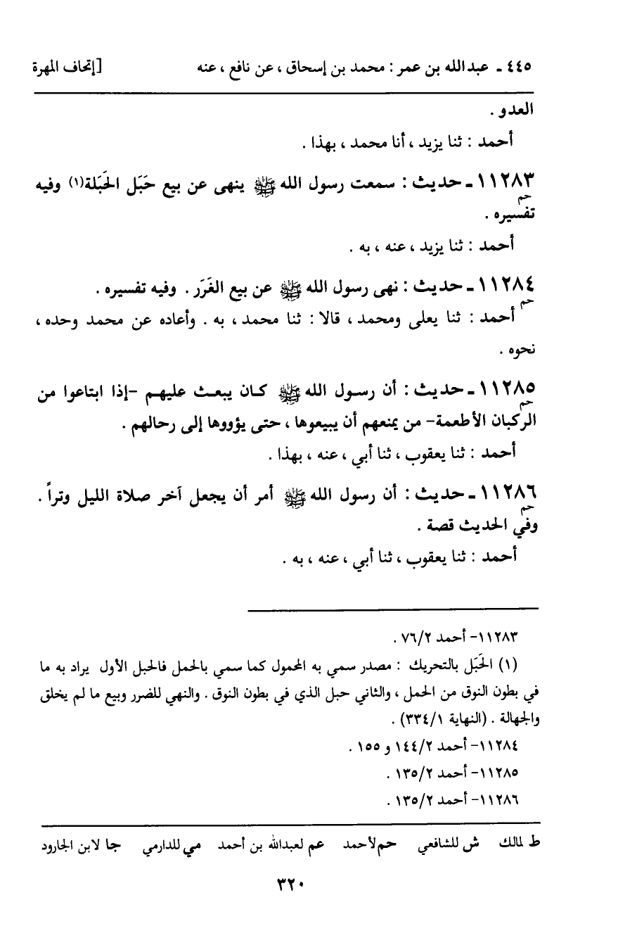 11283 - حَدِيثٌ (حم) : سَمِعْتُ رَسُولَ اللَّهِ , صَلَّى اللَّهُ عَلَيْهِ وَسَلَّمَ، يَنْهَى عَنْ بَيْعِ حَبَلِ الْحَبَلَةِ وَفِيهِ تَفْسِيرُهُ. أَحْمَدُ: ثنا يَزِيدُ، عَنْهُ، بِهِ.