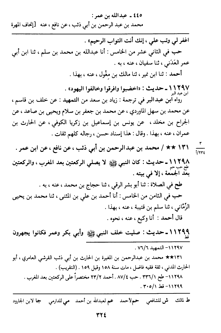 ـ مُحَمَّدُ بْنُ عَبْدِ الرَّحْمَنِ بْنِ أَبِي ذِئْبٍ، عَنْ نَافِعٍ، عَنِ ابْنِ عُمَرَ.