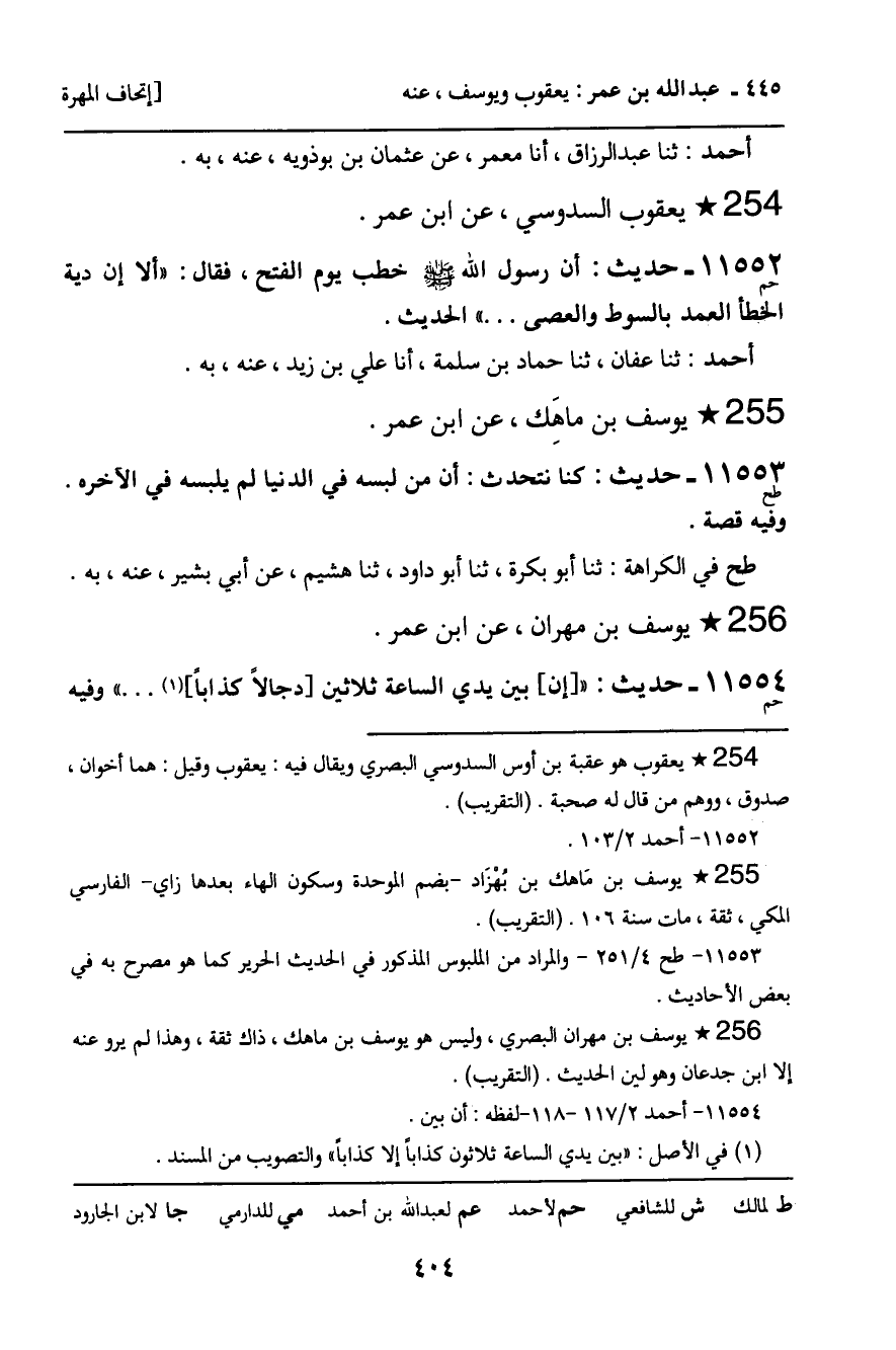 11554 - يُوسُفُ بْنُ مِهْرَانَ، عَنِ ابْنِ عُمَرَ. حَدِيثٌ (حم) : " إِنَّ بَيْنَ يَدَيِ السَّاعَةِ ثَلاثِينَ دَجَّالا كَذَّابًا ... " وَفِيهِ