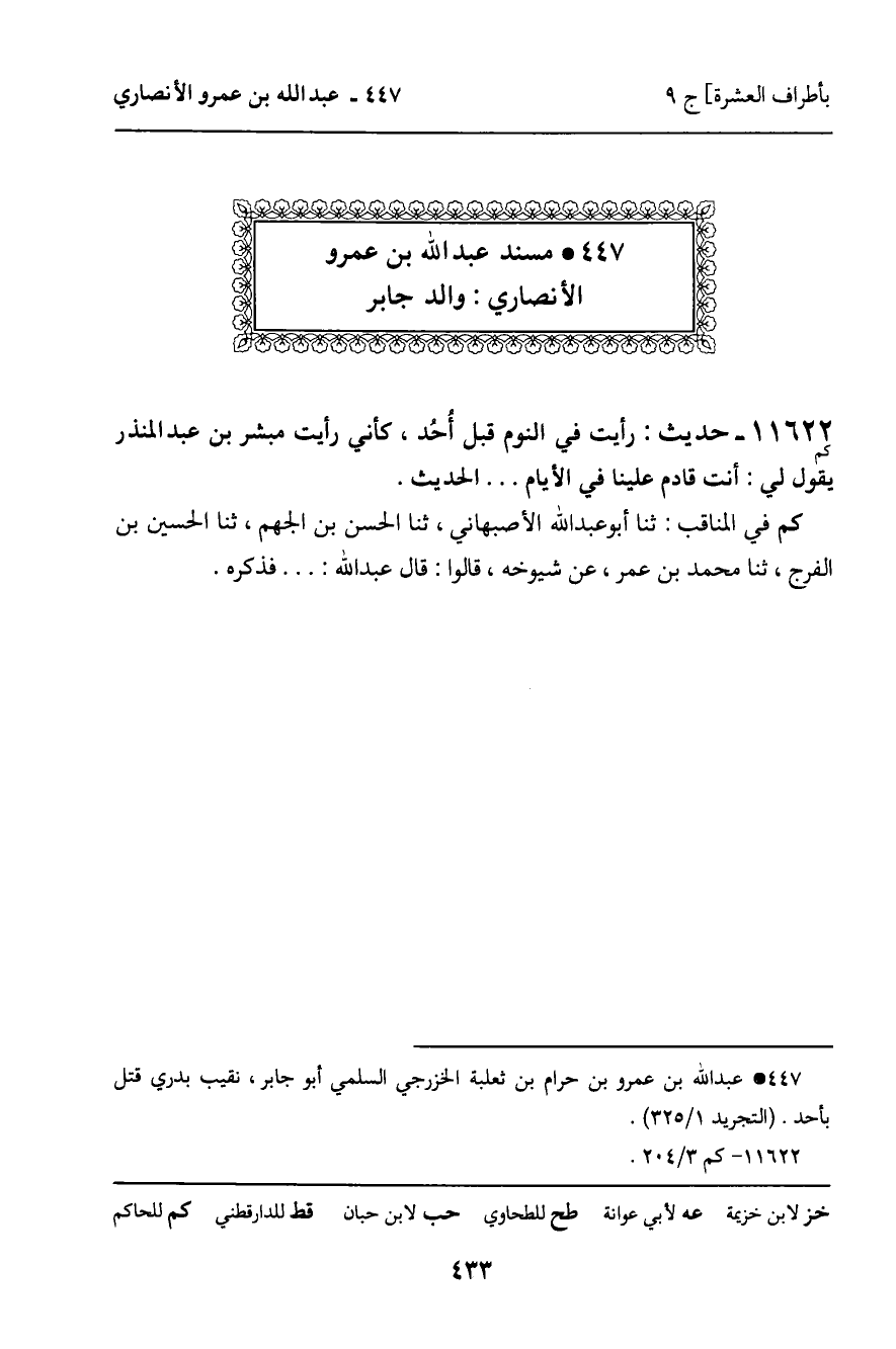 447 ـ مُسْنَدُ عَبْدِ اللَّهِ بْنِ عَمْرٍو الأَنْصَارِيِّ: وَالِدِ جَابِرٍ.