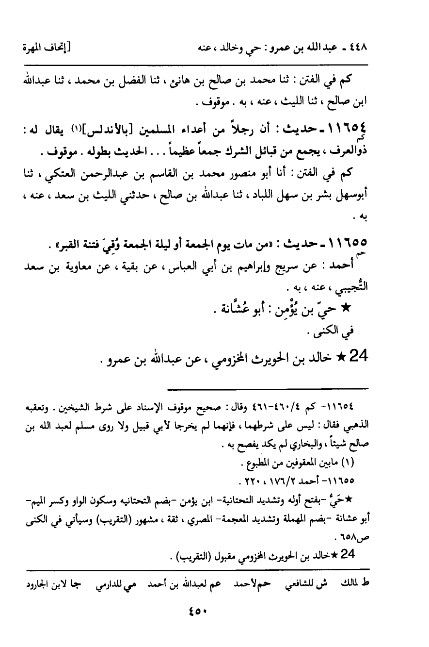 ـ خَالِدُ بْنُ الْحُوَيْرِثِ الْمَخْزُومِيُّ، عَنْ عَبْدِ اللَّهِ بْنِ عَمْرٍو.