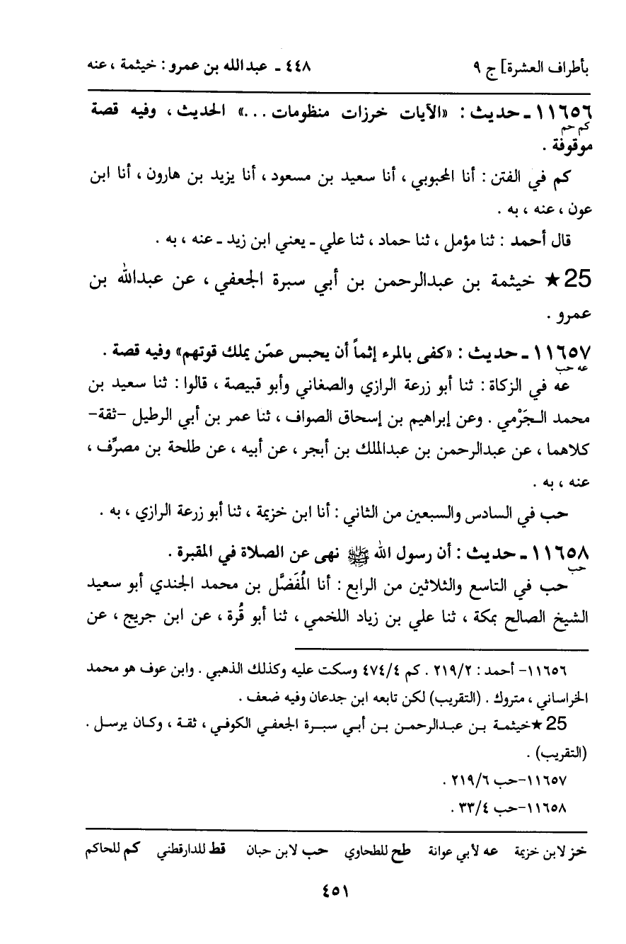 ـ خَيْثَمَةُ بْنُ عَبْدِ الرَّحْمَنِ بْنِ أَبِي سَبْرَةَ الْجُعْفِيُّ، عَنْ عَبْدِ اللَّهِ بْنِ عَمْرٍو.