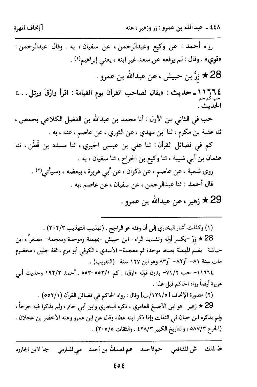 ـ زِرُّ بْنُ حُبَيْشٍ، عَنْ عَبْدِ اللَّهِ بْنِ عَمْرٍو.