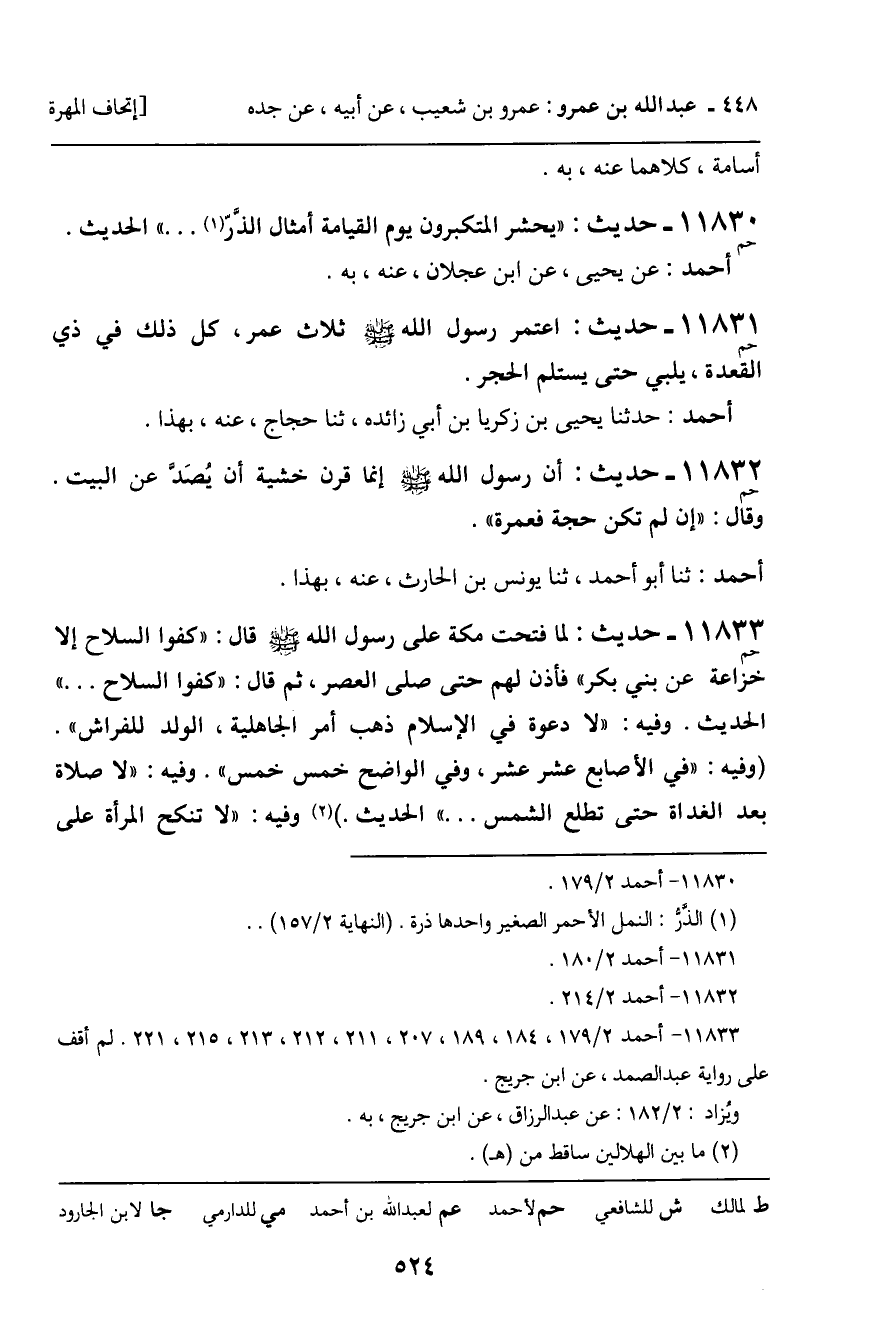 11830 - حَدِيثٌ (حم) : " يُحْشَرُ الْمُتَكَبِّرُونَ يَوْمَ الْقِيَامَةِ أَمْثَالَ الذَّرِّ ... " الْحَدِيثَ. أَحْمَدُ: عَنْ يَحْيَى، عَنِ ابْنِ عَجْلانَ، عَنْهُ، بِهِ.