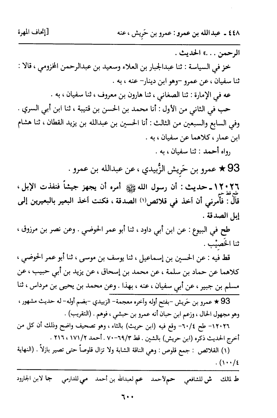 ـ عَمْرُو بْنُ حَرِيشٍ الزُّبَيْدِيُّ، عَنْ عَبْدِ اللَّهِ بْنِ عَمْرٍو.