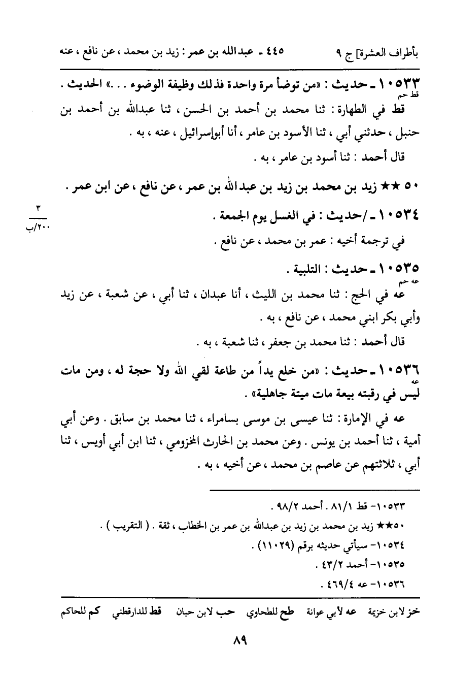 ـ زَيْدُ بْنُ مُحَمَّدِ بْنِ زَيْدِ بْنِ عَبْدِ اللَّهِ بْنِ عُمَرَ , عَنْ نَافِعٍ , عَنِ ابْنِ عُمَرَ.