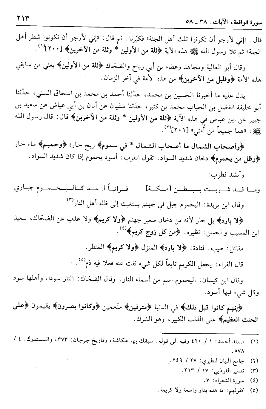 قال: «إني لأرجو أن تكونوا ثلث أهل الجنة» فكبّرنا. ثم قال: «إني لأرجو أن تكونوا شطر أهل الجنة» ثم تلا رسول الله صلّى الله عليه وسلّم هذه الآية ثُلَّةٌ مِنَ الْأَوَّلِينَ وَثُلَّةٌ مِنَ الْآخِرِينَ [200] «1» .