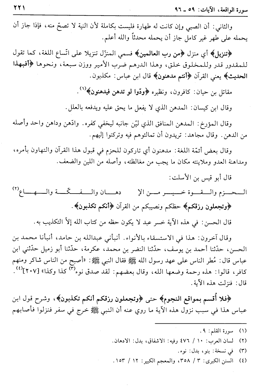 فَلا أُقْسِمُ بِمَواقِعِ النُّجُومِ حتى وَتَجْعَلُونَ رِزْقَكُمْ أَنَّكُمْ تُكَذِّبُونَ، وشرح قول ابن عباس هذا في سبب نزول هذه الآية ما