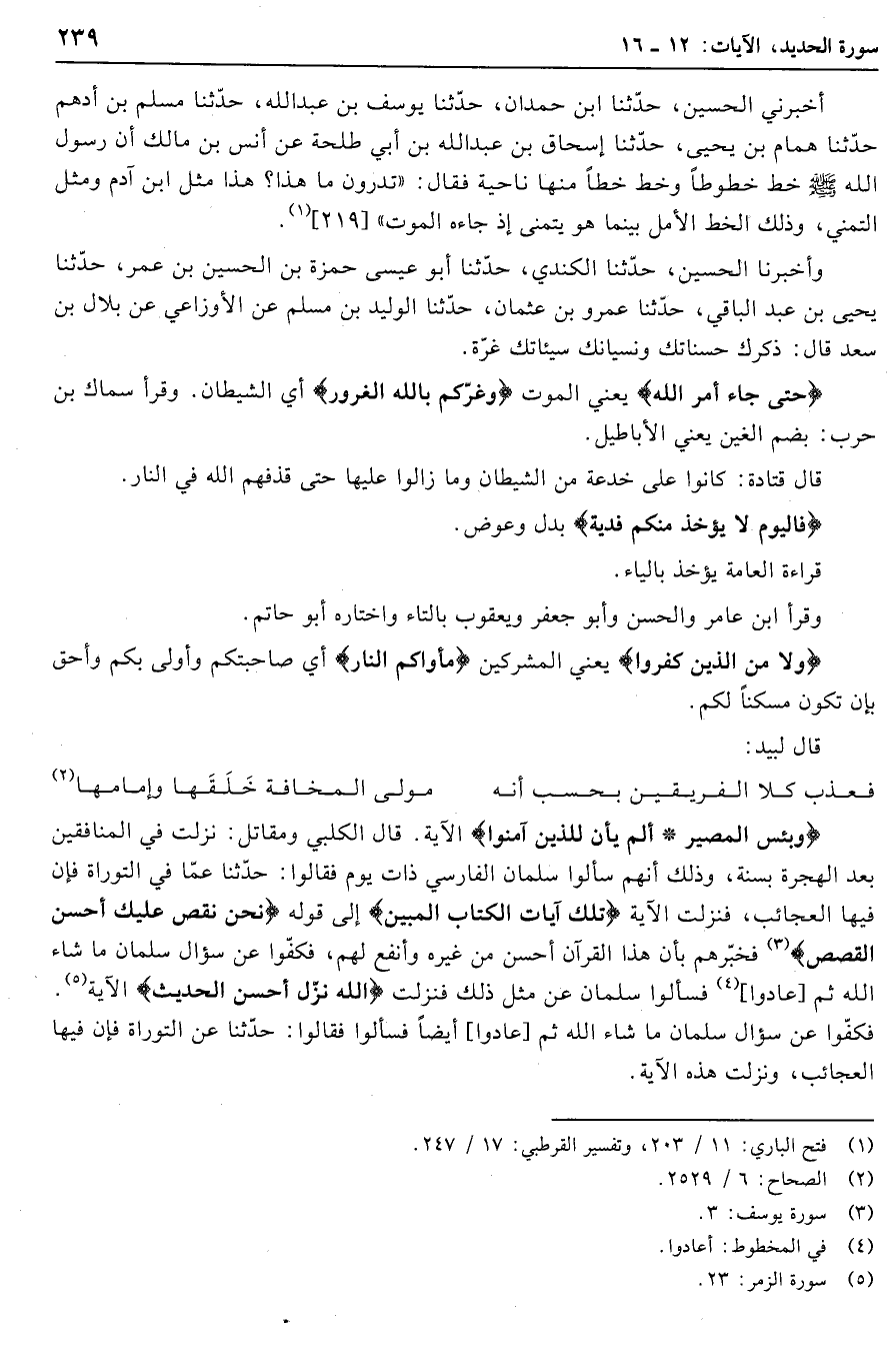 (1) فتح الباري: 11/ 203، وتفسير القرطبي: 17/ 247.