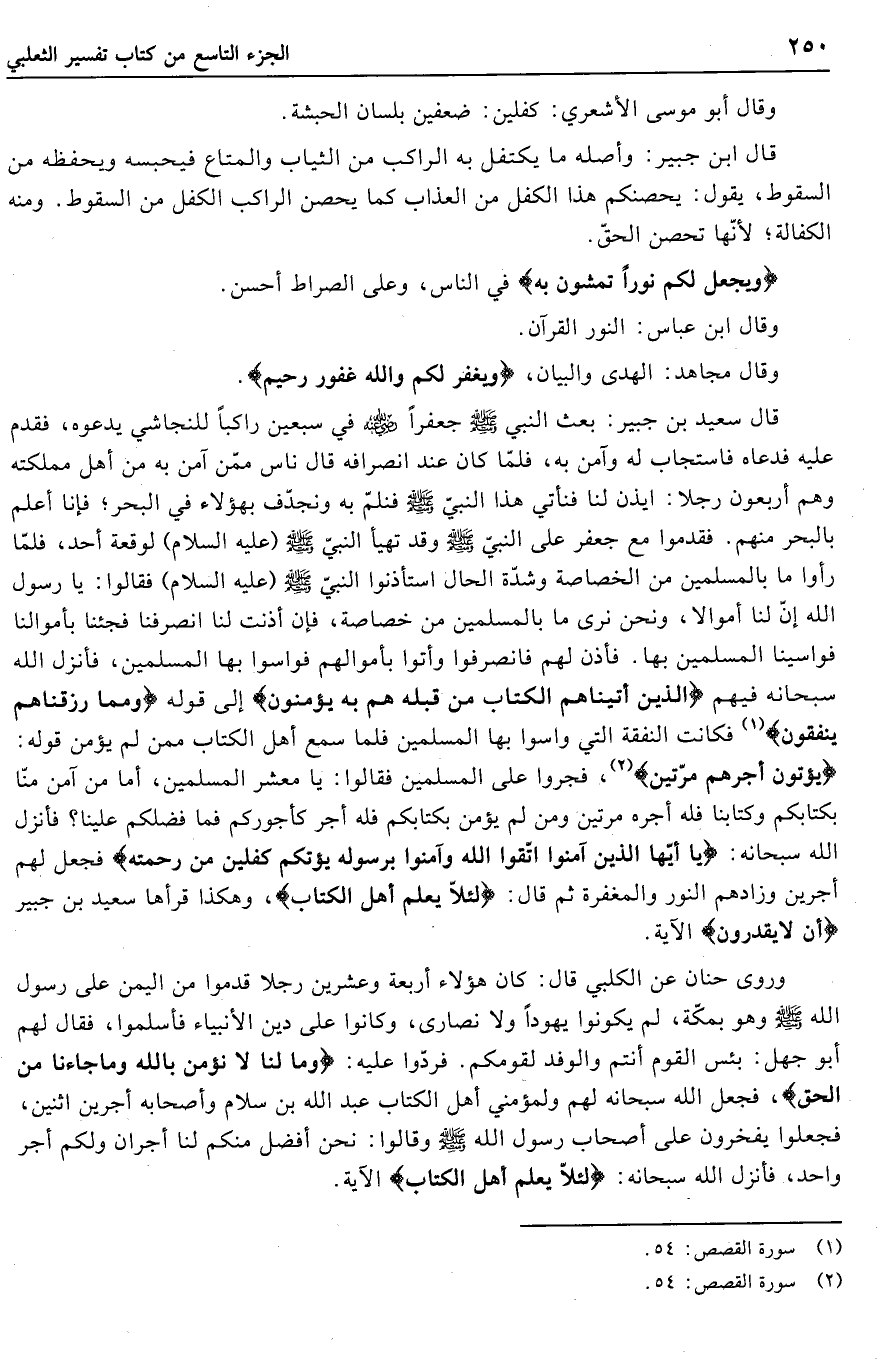 وقال أبو موسى الأشعري: كِفْلَيْنِ: ضعفين بلسان الحبشة.