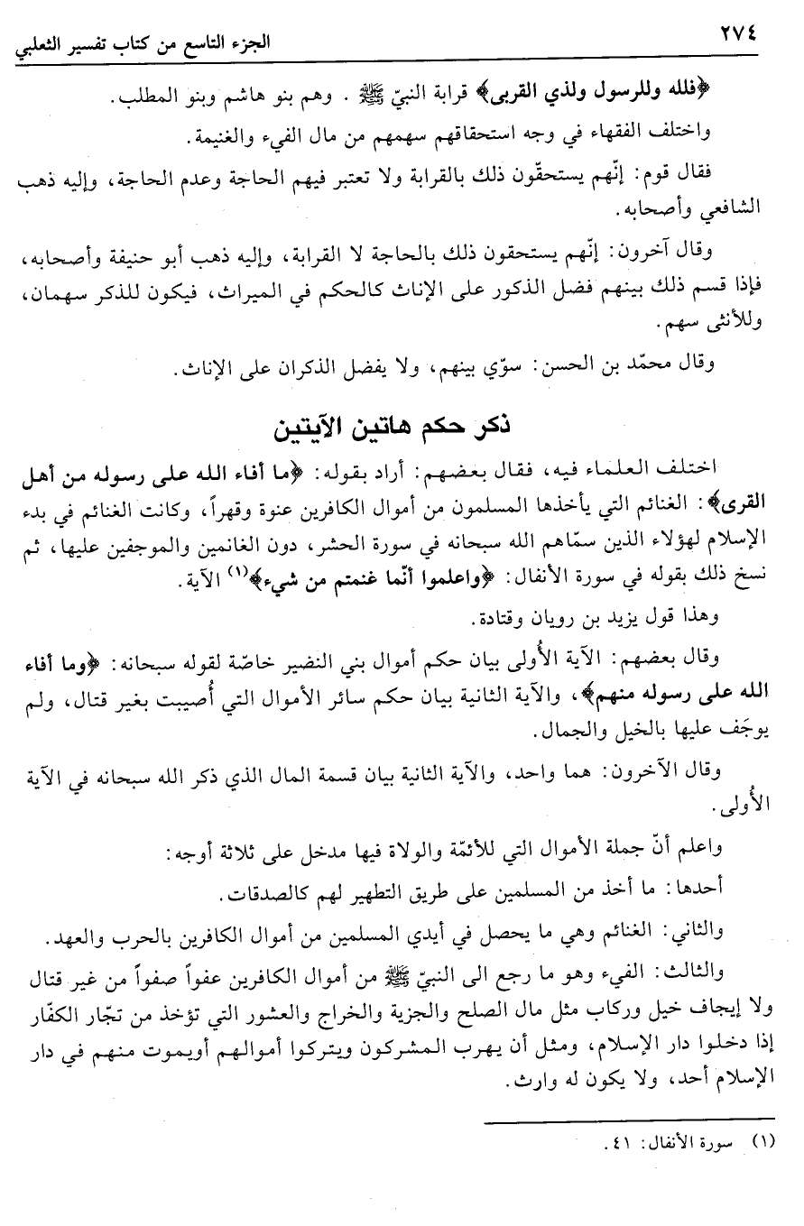 (1) سورة الأنفال: 41.
