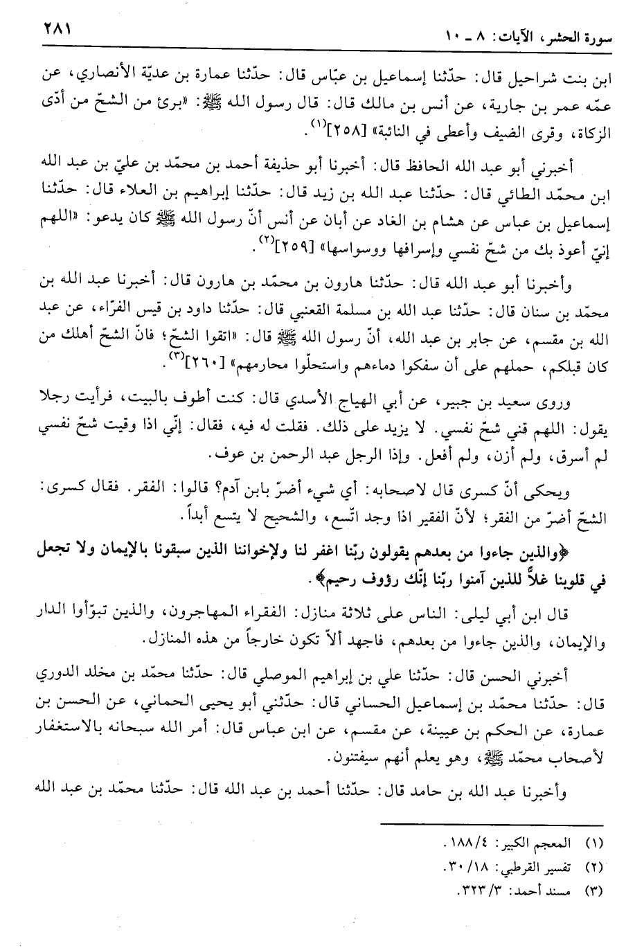 وَالَّذِينَ جاؤُ مِنْ بَعْدِهِمْ يَقُولُونَ رَبَّنَا اغْفِرْ لَنا وَلِإِخْوانِنَا الَّذِينَ سَبَقُونا بِالْإِيمانِ وَلا تَجْعَلْ فِي قُلُوبِنا غِلًّا لِلَّذِينَ آمَنُوا رَبَّنا إِنَّكَ رَؤُفٌ رَحِيمٌ.