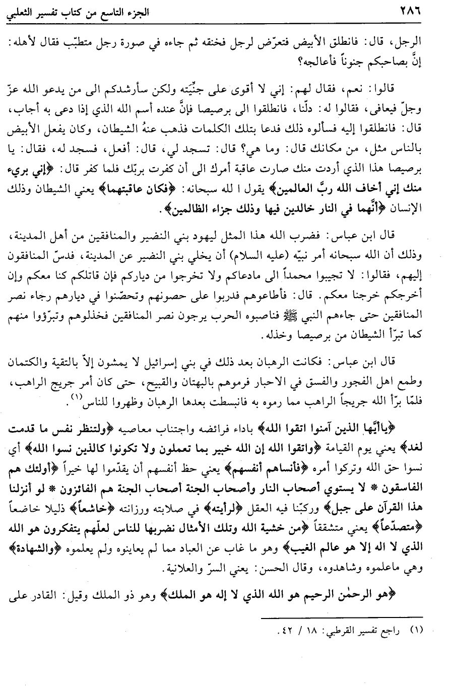 كتاب تفسير الثعلبي = الكشف والبيان عن تفسير القرآن (اسم الجزء: 9)