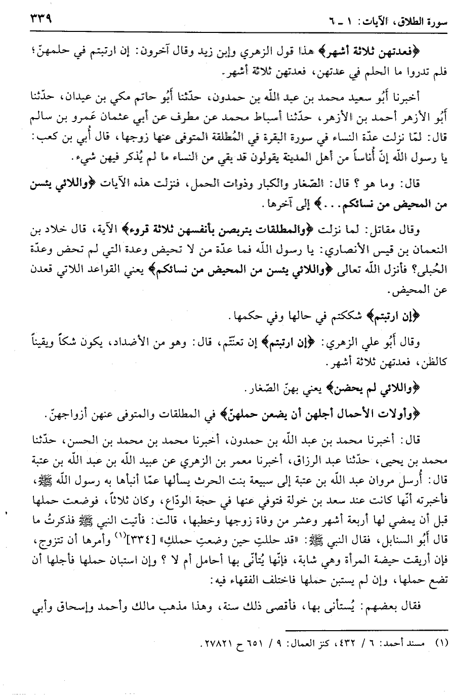 قال: وما هو؟ قال: الصّغار والكبار وذوات الحمل، فنزلت هذه الآيات وَاللَّائِي يَئِسْنَ مِنَ الْمَحِيضِ مِنْ نِسائِكُمْ ... إلى آخرها.