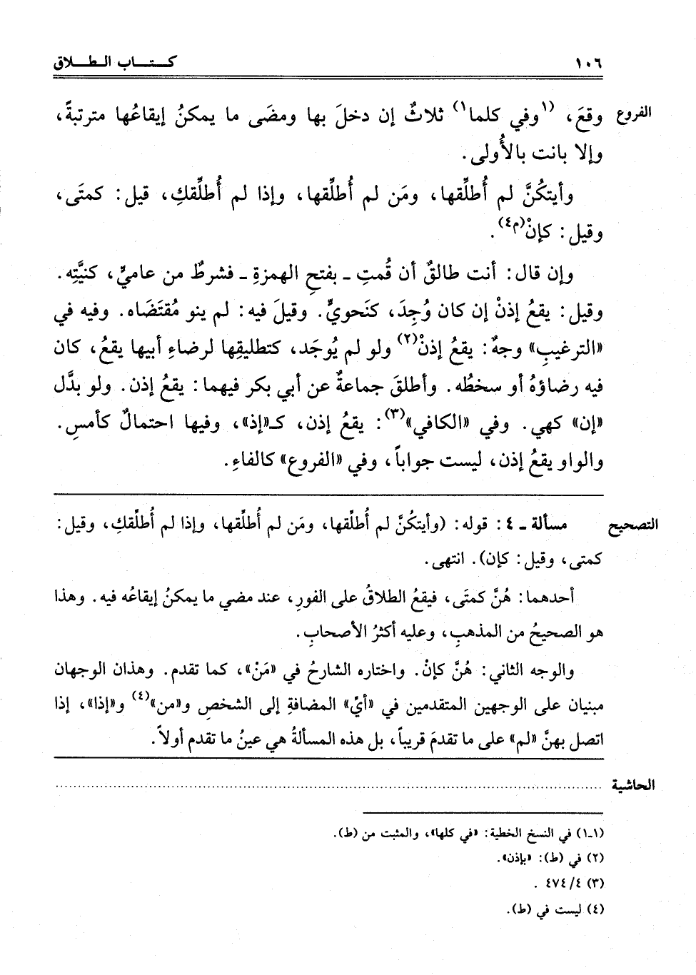 وَأَيَّتُكُنَّ لَمْ أُطَلِّقْهَا وَمَنْ لَمْ أُطَلِّقْهَا وَإِذَا لَمْ أُطَلِّقْك، قِيلَ: كَمَتَى، وَقِيلَ: كَإِنْ م 4.