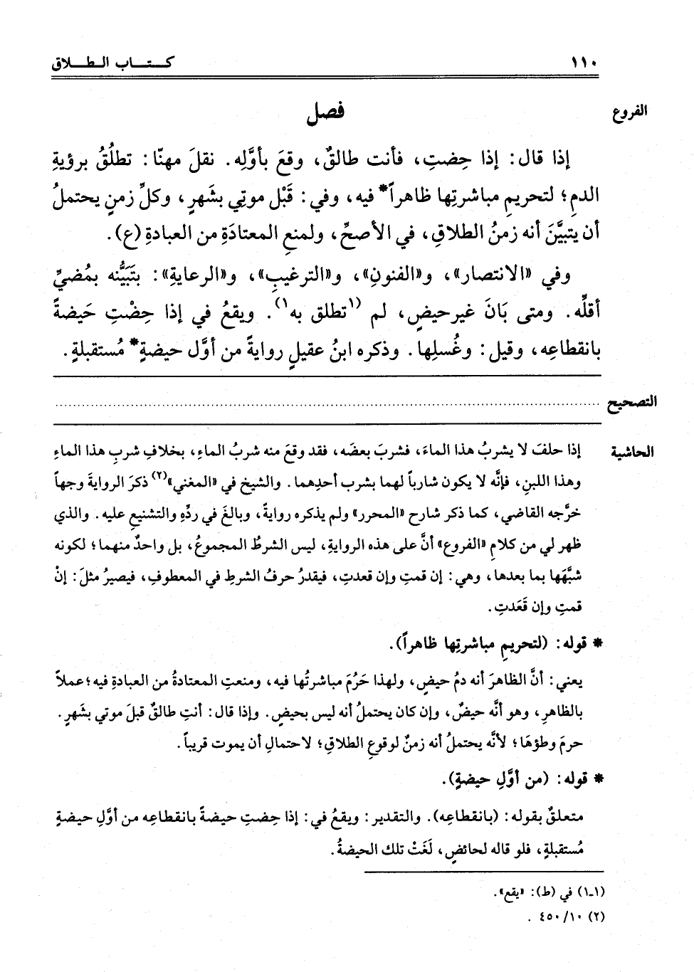 نَقَلَ مُهَنَّا تَطْلُقُ بِرُؤْيَةِ الدَّمِ، لِتَحْرِيمِ مُبَاشَرَتِهَا ظَاهِرًا فِيهِ، وَفِي: قَبْلَ مَوْتِي بِشَهْرٍ، وَكُلُّ زَمَنٍ يَحْتَمِلُ أَنْ تَتَبَيَّنَ أَنَّهُ زَمَنُ الطَّلَاقِ، فِي الْأَصَحِّ، وَلِمَنْعِ الْمُعْتَادَةِ مِنْ الْعِبَادَةِ ع.