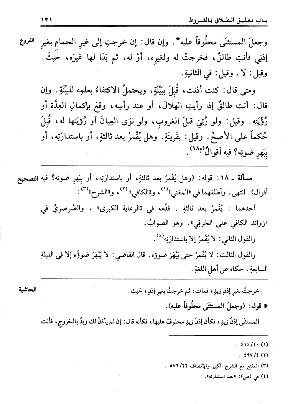 ـــــــــــــــــــــــــــــQمَسْأَلَةٌ 18: قَوْلُهُ: وَهَلْ يُقْمِرُ بَعْدَ ثَالِثَةٍ أَوْ بِاسْتِدَارَتِهِ أَوْ بِبَهْرِ ضَوْئِهِ؟ فِيهِ أَقْوَالٌ، انْتَهَى. وَأَطْلَقَهَا فِي الْمُغْنِي1 وَالْكَافِي2 وَالشَّرْحِ3.