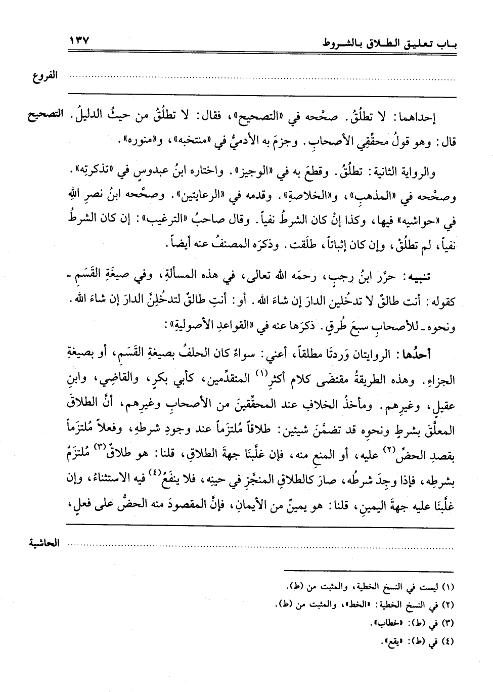 تَنْبِيهٌ: حَرَّرَ ابْنُ رَجَبٍ رَحِمَهُ اللَّهُ تَعَالَى فِي هَذَا الْمَسْأَلَةَ وَفِي صِيغَةِ الْقَسَمِ كَقَوْلِهِ أَنْتِ طَالِقٌ لَا تَدْخُلِينَ الدَّارَ إنْ شَاءَ اللَّهُ، أَوْ أَنْتِ طَالِقٌ لَتَدْخُلِنَّ الدَّارَ إنْ شَاءَ اللَّهُ، وَنَحْوَهُ لِلْأَصْحَابِ سَبْعُ طُرُقٍ ذَكَرَهَا عَنْهُ فِي الْقَوَاعِدِ الْأُصُولِيَّةِ.