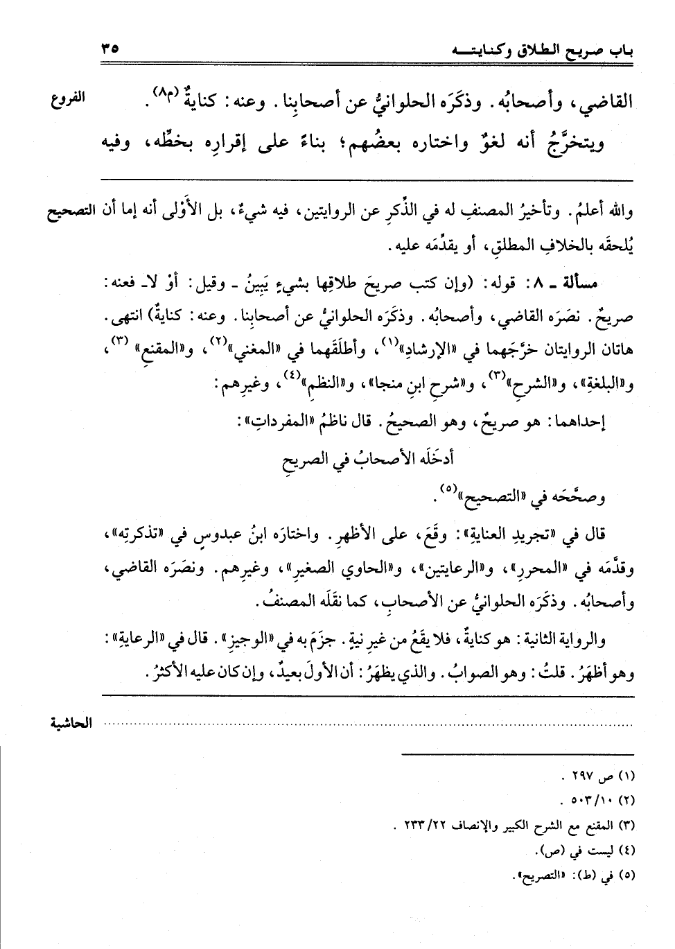 الْقَاضِي وَأَصْحَابُهُ. وَذَكَرَهُ الْحَلْوَانِيُّ عَنْ أَصْحَابِنَا، وَعَنْهُ كناية م 8.