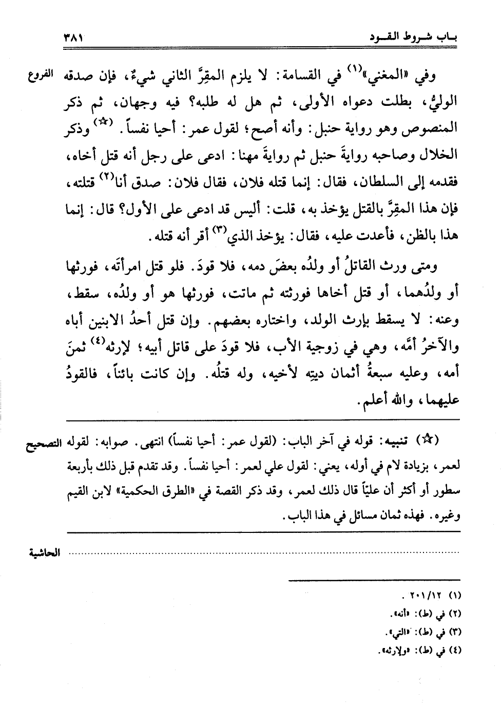 ـــــــــــــــــــــــــــــQتَنْبِيهٌ: قَوْلُهُ فِي آخِرِ الْبَابِ لِقَوْلِ عُمَرَ: أَحْيَا نَفْسًا انْتَهَى. صَوَابُهُ لِقَوْلِهِ لِعُمَرَ، بِزِيَادَةِ لَامٍ فِي أَوَّلِهِ، يَعْنِي لِقَوْلِ عَلِيٍّ لِعُمَرَ: أَحْيَا نَفْسًا. وَقَدْ تَقَدَّمَ قَبْلَ ذَلِكَ بِأَرْبَعَةِ سُطُورٍ أَوْ أَكْثَرَ أَنَّ عَلِيًّا قَالَ ذَلِكَ لِعُمَرَ، وَقَدْ ذَكَرَ الْقِصَّةَ فِي الطُّرُقِ الْحِكْمِيَّةِ لِابْنِ الْقَيِّمِ وَغَيْرِهِ. فَهَذِهِ ثَمَانُ مَسَائِلَ فِي هذا الباب.