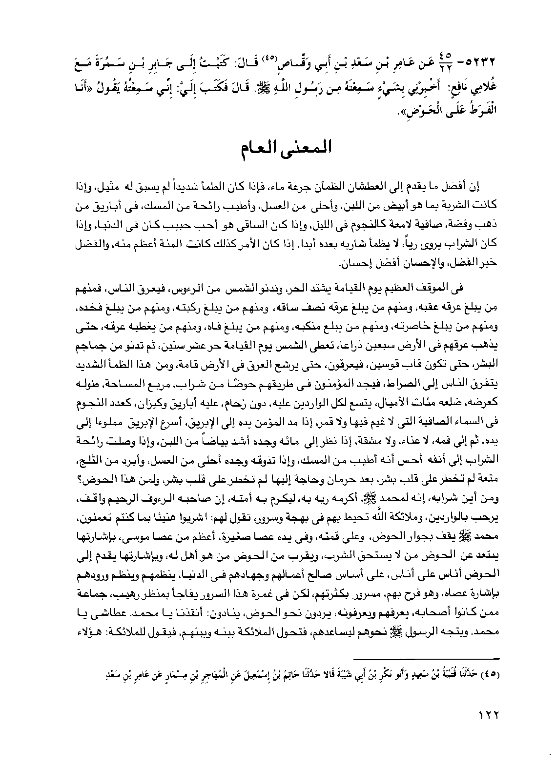 5232 - عن عامر بن سعد بن أبي وقاص قال: كتبت إلى جابر بن سمرة مع غلامي نافع: أخبرني بشيء سمعته من رسول الله صلى الله عليه وسلم. قال فكتب إلي: إني سمعته يقول "أنا الفرط على الحوض".