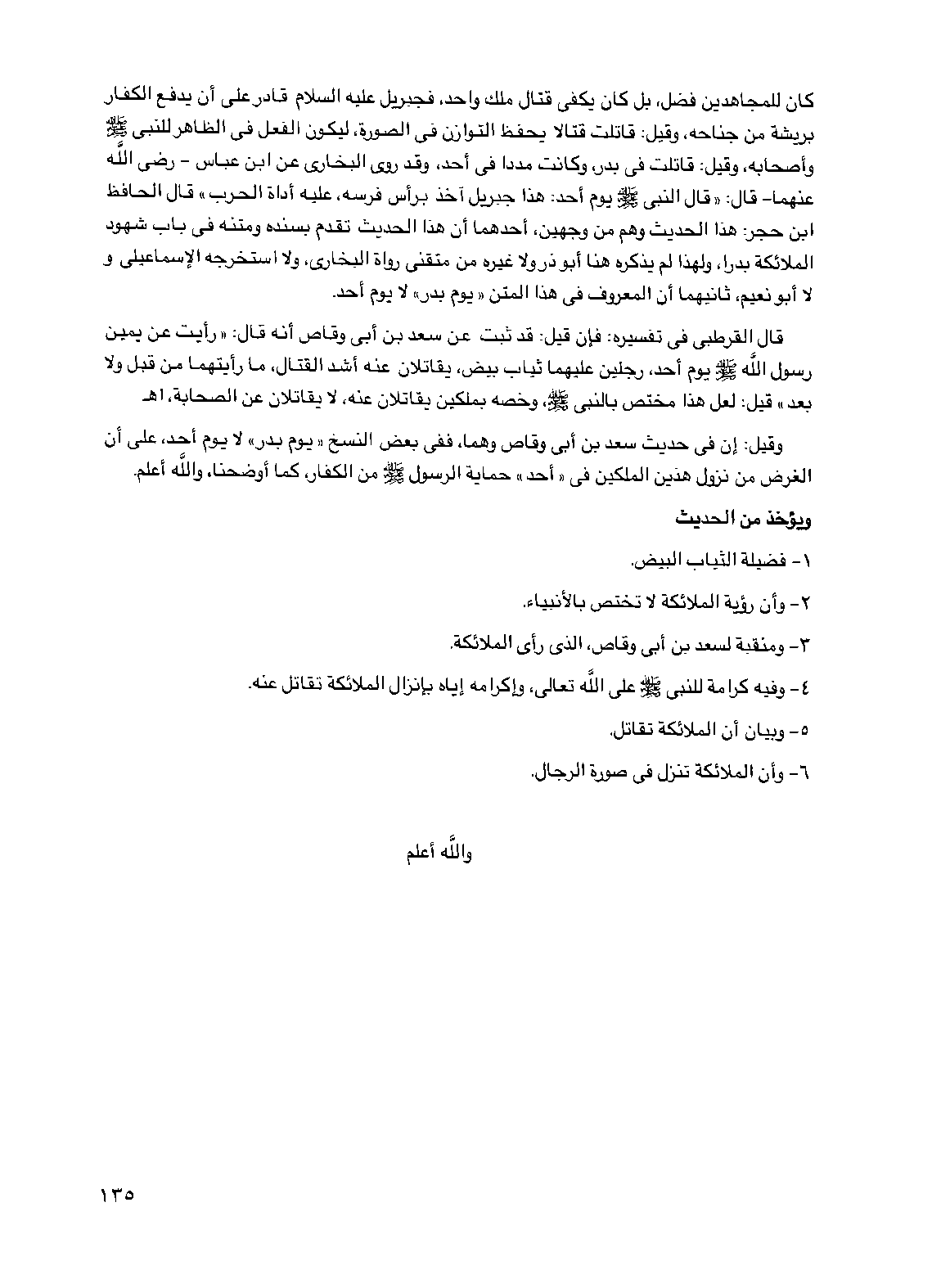 وقيل: إن في حديث سعد بن أبي وقاص وهما، ففي بعض النسخ "يوم بدر" لا يوم أحد، على أن الغرض من نزول هذين الملكين في "أحد" حماية الرسول صلى الله عليه وسلم من الكفار، كما أوضحنا، والله أعلم.