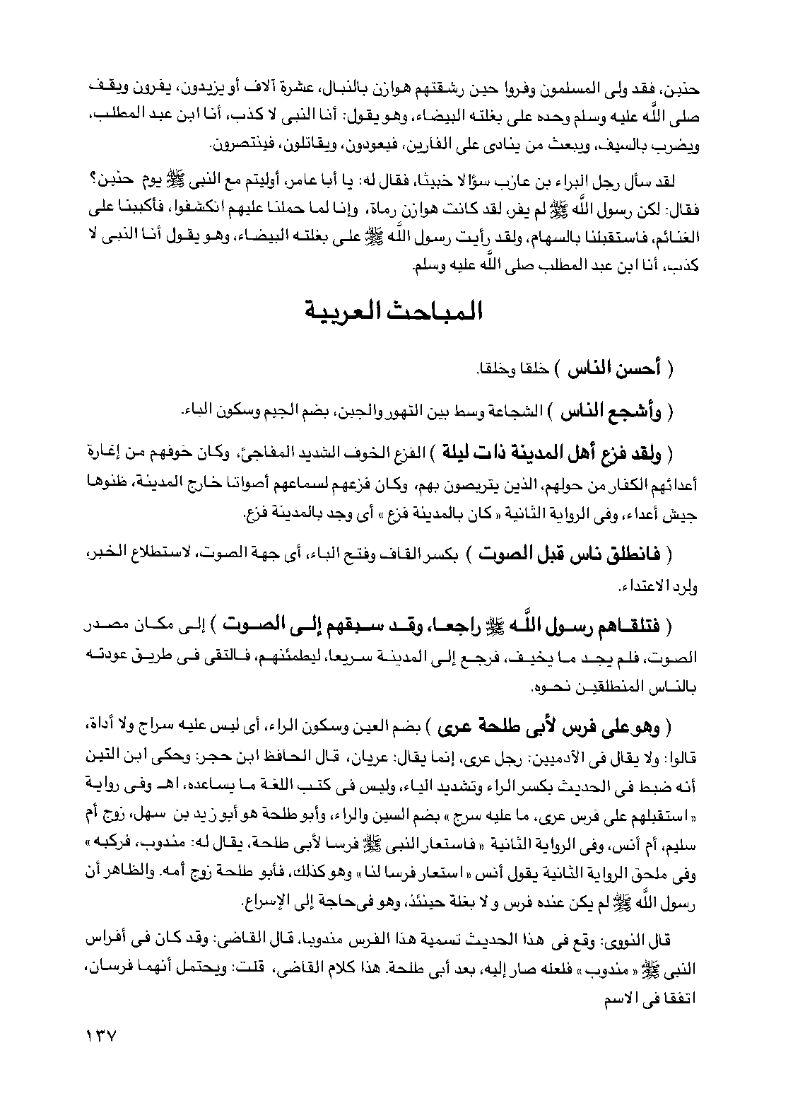 لقد سأل رجل البراء بن عازب سؤالا خبيثا، فقال له: يا أبا عامر، أوليتم مع النبي صلى الله عليه وسلم يوم حنين؟ فقال: لكن رسول الله صلى الله عليه وسلم لم يفر، لقد كانت هوازن رماة، وإنا لما حملنا عليهم انكشفوا، فأكببنا على الغنائم، فاستقبلنا بالسهام، ولقد رأيت رسول الله صلى الله عليه وسلم على بغلته البيضاء، وهو يقول أنا النبي لا كذب، أنا ابن عبد المطلب صلى الله عليه وسلم.