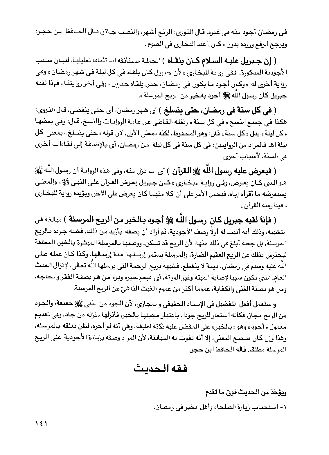 في رمضان أجود منه في غيره. قال النووي: الرفع أشهر، والنصب جائز، قال الحافظ ابن حجر: ويرجح الرفع وروده بدون "كان" عند البخاري في الصوم.