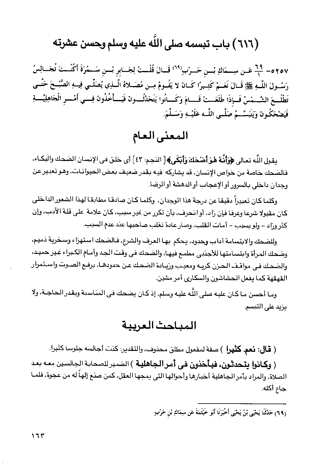 (616) باب تبسمه صلى الله عليه وسلم وحسن عشرته