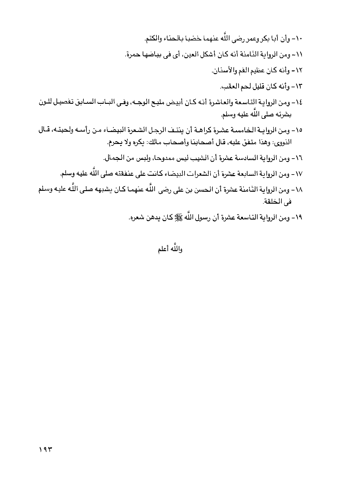 15 - ومن الرواية الخامسة عشرة كراهة أن ينتف الرجل الشعرة البيضاء من رأسه ولحيته، قال النووي: وهذا متفق عليه، قال أصحابنا وأصحاب مالك: يكره ولا يحرم.