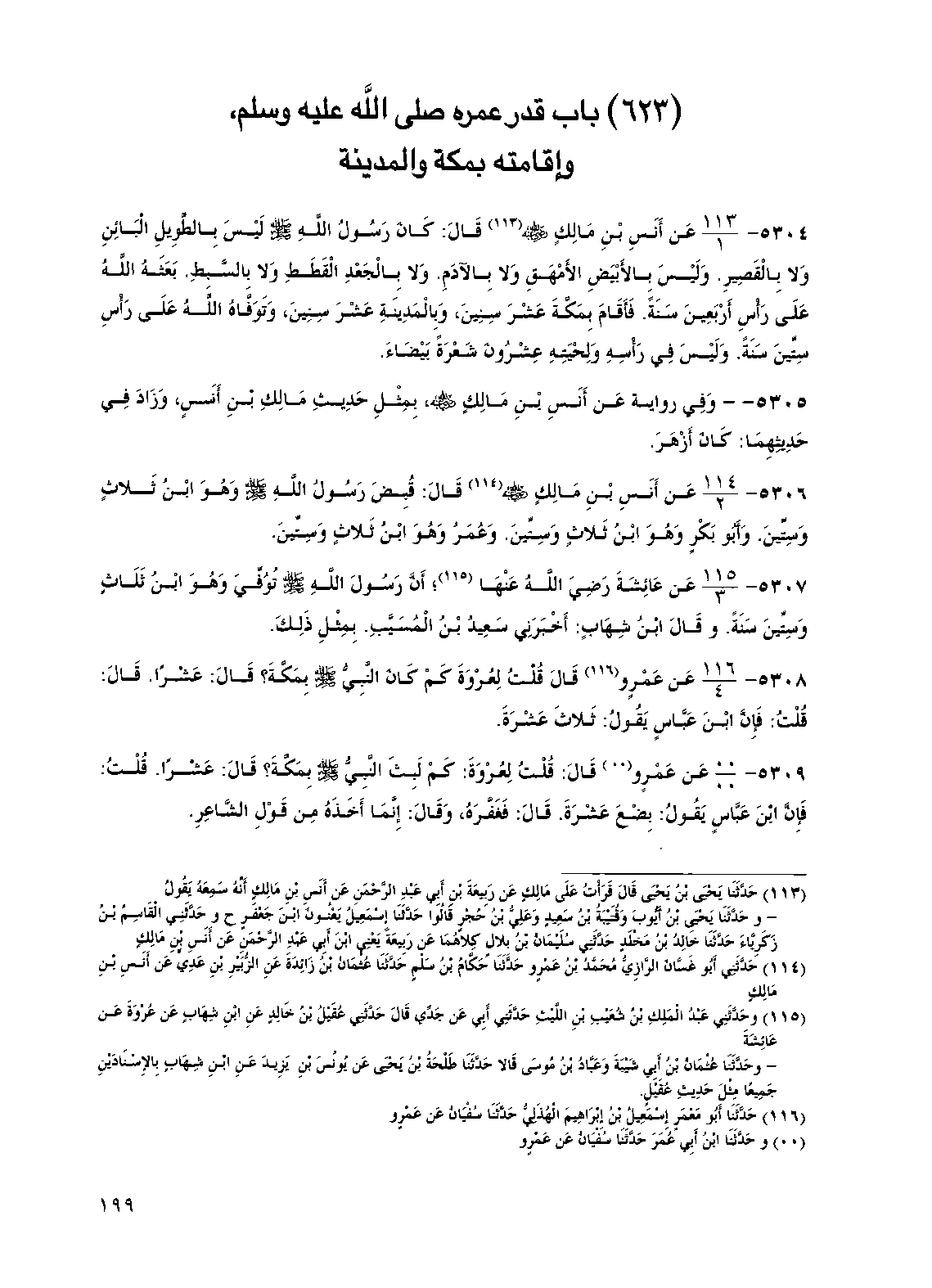 (623) باب قدر عمره صلى الله عليه وسلم، وإقامته بمكة والمدينة