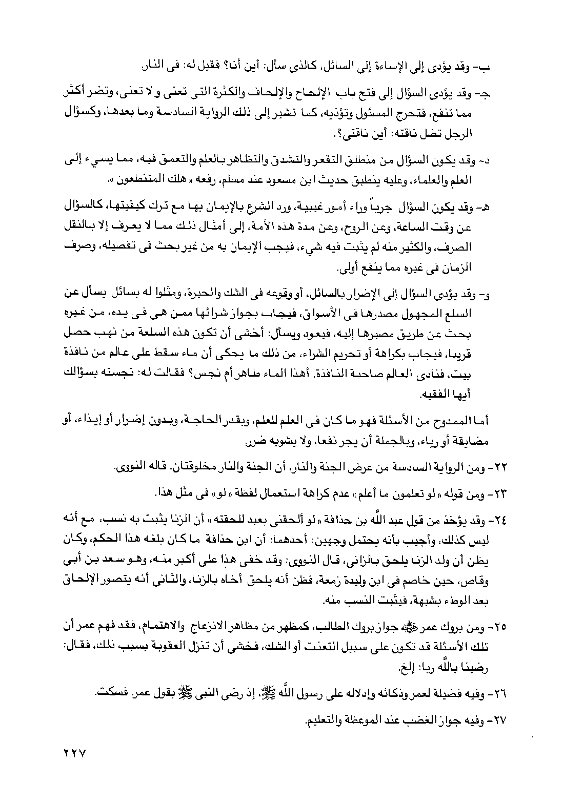 ج- وقد يؤدي السؤال إلى فتح باب الإلحاح والإلحاف والكثرة التي تعني ولا تعني، وتضر أكثر مما تنفع، فتحرج المسئول وتؤذيه، كما تشير إلى ذلك الرواية السادسة وما بعدها، وكسؤال الرجل تضل ناقته: أين ناقتي؟ .