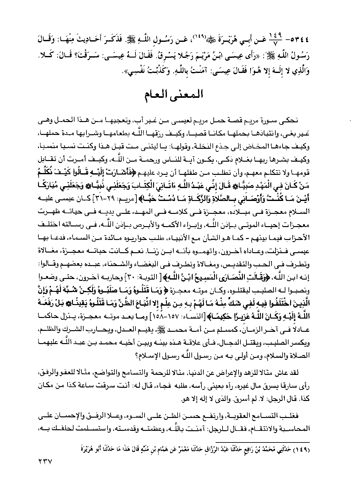 5344 - عن أبي هريرة رضي الله عنه، عن رسول الله صلى الله عليه وسلم فذكر أحاديث منها: وقال رسول الله صلى الله عليه وسلم: "رأى عيسى ابن مريم رجلا يسرق. فقال له عيسى: سرقت؟ قال: كلا. والذي لا إله إلا هو! فقال عيسى: آمنت بالله. وكذبت نفسي".