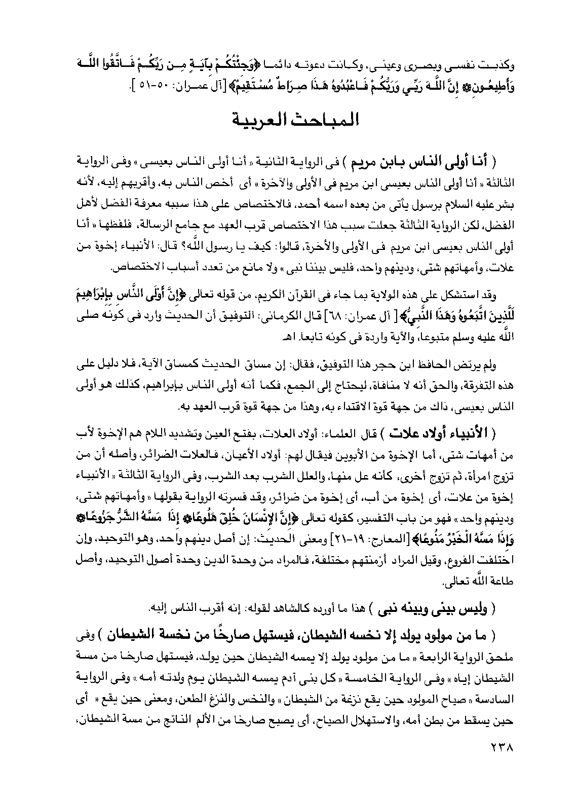 (وليس بيني وبينه نبي) هذا ما أورده كالشاهد لقوله: إنه أقرب الناس إليه.