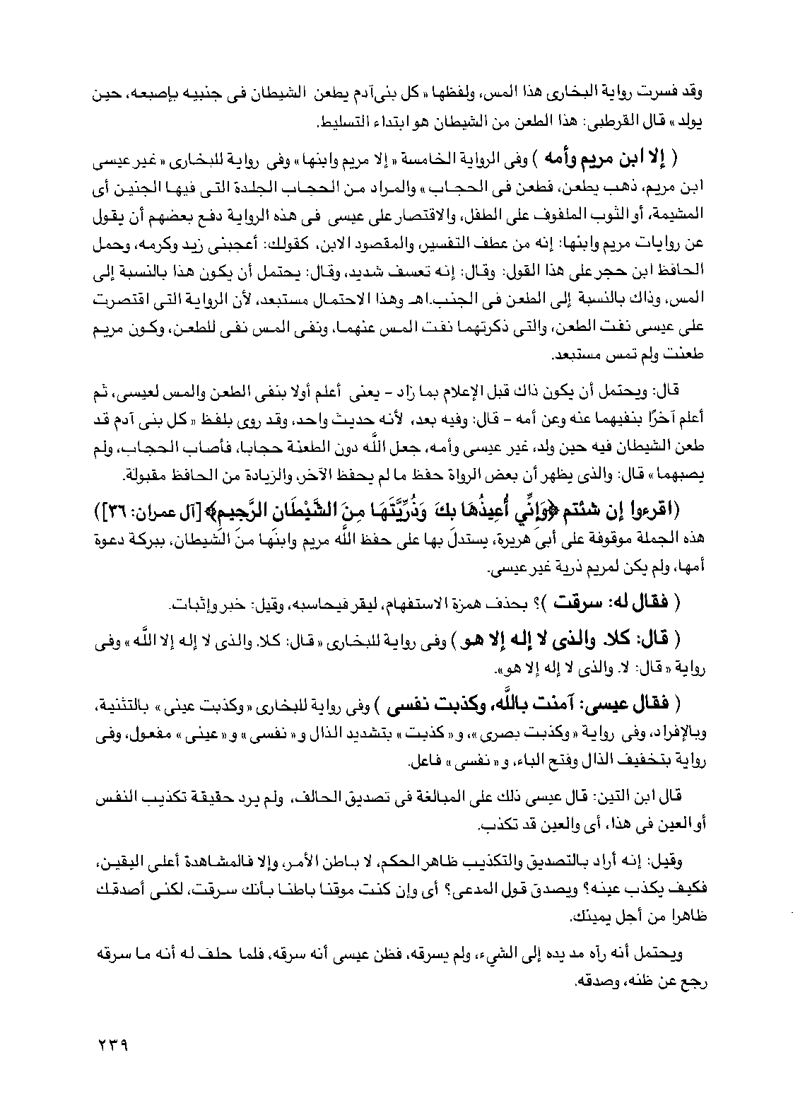 (اقرءوا إن شئتم {وإني أعيذها بك وذريتها من الشيطان الرجيم} [آل عمران: 36]) هذه الجملة موقوفة على أبي هريرة، يستدل بها على حفظ الله مريم وابنها من الشيطان، ببركة دعوة أمها، ولم يكن لمريم ذرية غير عيسى.