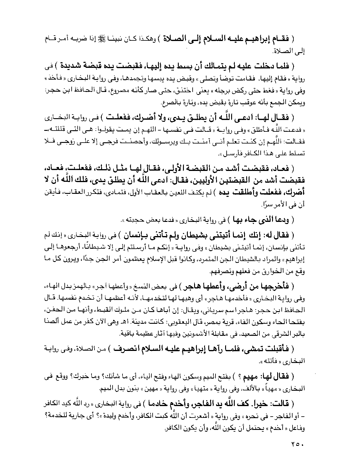 (فأخرجها من أرضي، وأعطها هاجر) في بعض النسخ "وأعطها آجر" بالهمز بدل الهاء، وفي رواية البخاري "فأخدمها هاجر" أي وهبها لها لتخدمها، لأنه أعظمها أن تخدم نفسها. قال الحافظ ابن حجر: هاجر اسم سرياني. ويقال: إن أباها كان من ملوك القبط، وأنها من الحفن، بفتحا الحاء وسكون الفاء، قرية بمصر، قال اليعقوبي: كانت مدينة. اهـ. وهي الآن كفر من عمل ألصنا بالبر الشرقي من الصعيد، في مقابلة الأشمونين وفيها آثار عظيمة باقية.