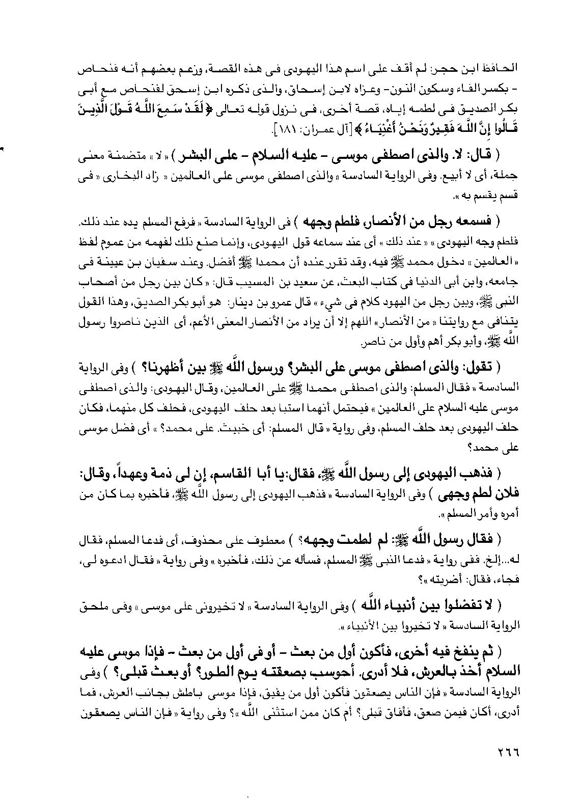 (لا تفضلوا بين أنبياء الله) وفي الرواية السادسة "لا تخيروني على موسى" وفي ملحق الرواية السادسة "لا تخيروا بين الأنبياء".